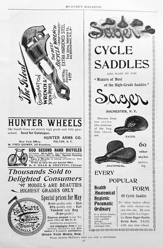 1897 Antique Bicycle Ephemera Vintage Saddle & Bicycle Ads AD#N1305