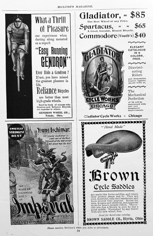 1896 Magazine Page - Original Bicycle Ads Front and Back N107