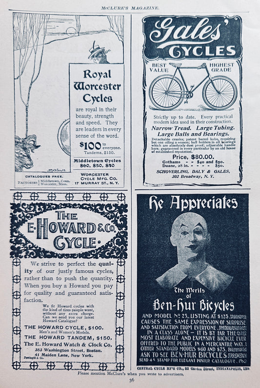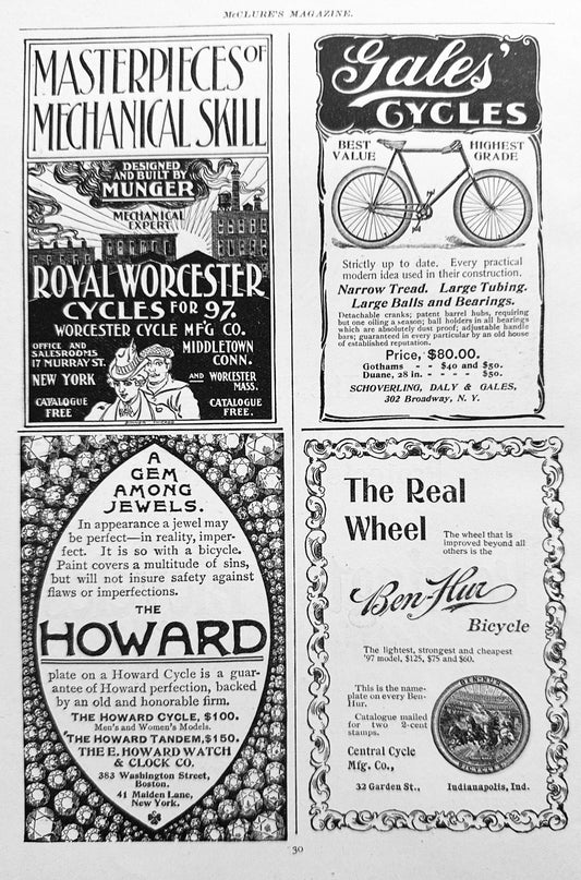 1897 Antique Bicycle & Bicycle Advertisements Ephemera AD#N1267