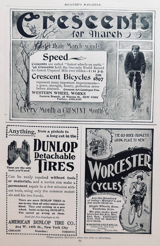 1897 Antique Bicycle Ephemera - Crescents for April + Others