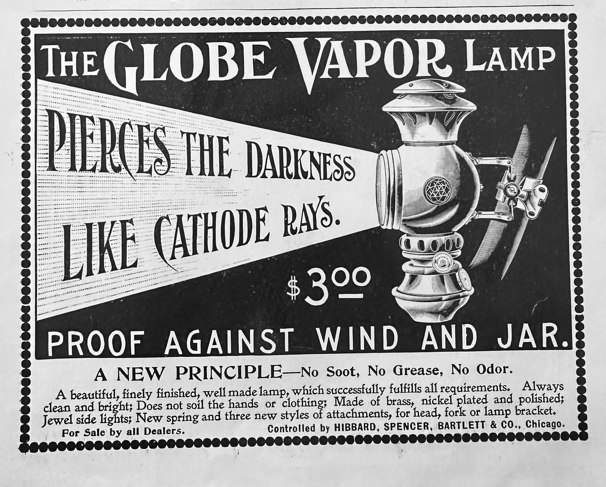 1896 Globe Vapor Lamp pierces the Darkness Vintage Lamp Ad N407