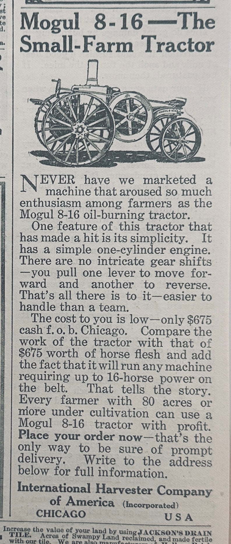 1915 IH Mogul 8-16 Tractor & 1924 McCormick Deering Tractor Ads N480