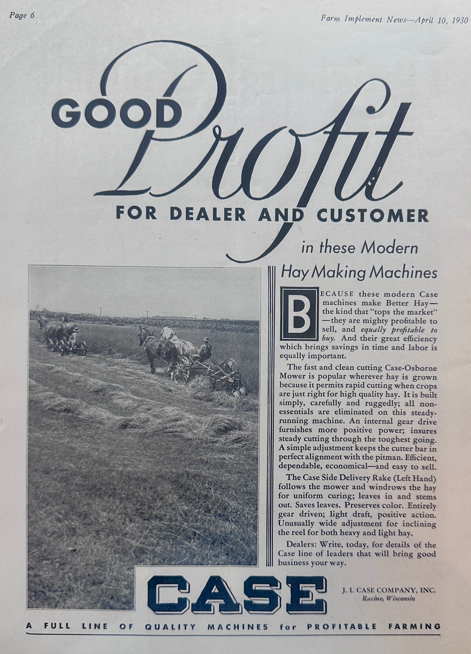 1930 J.I. Case Modern Haying Machines & Myers Water Systems Ad #1285