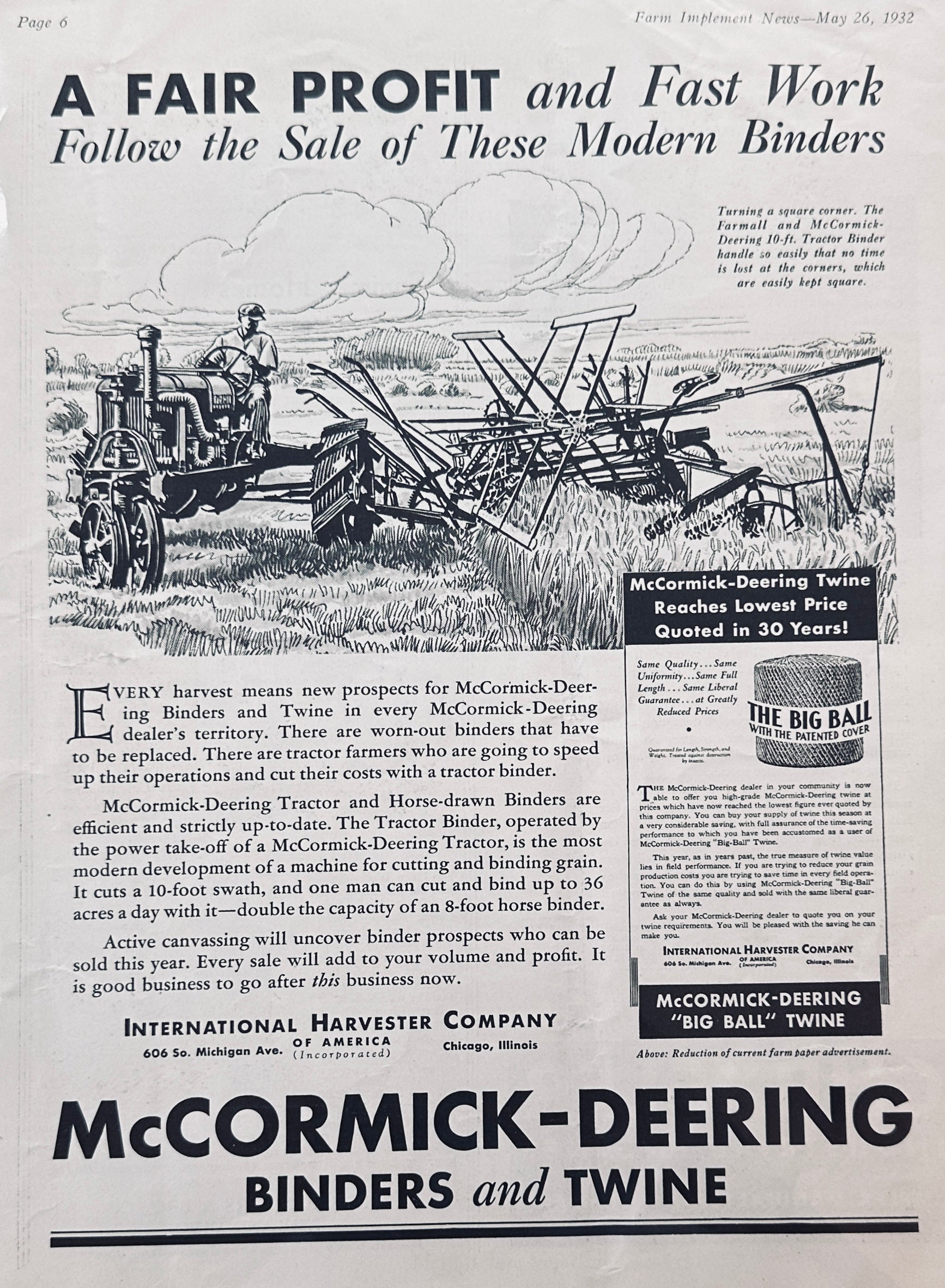 1932 McCormick-Deering Binders & Twine Ad #1183