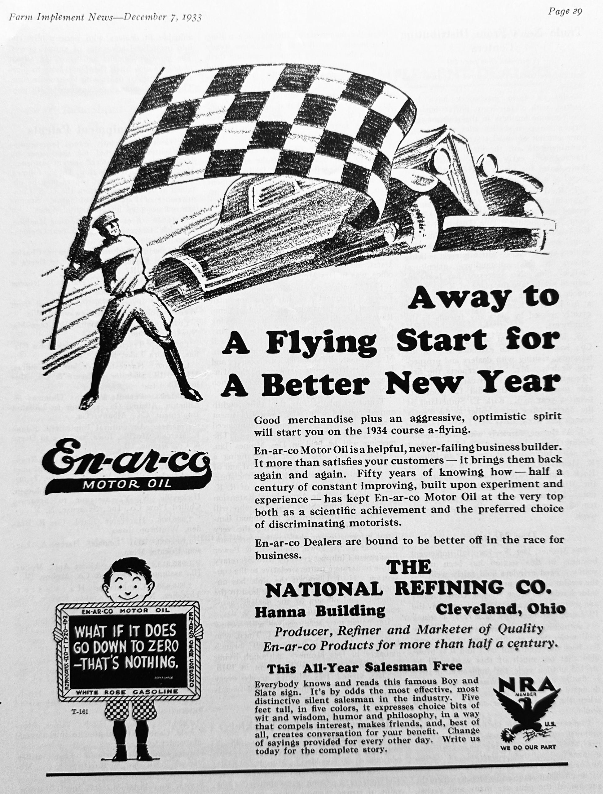 1933 En-Ar-Co Motor Oil National Refining Co Vintage AD #1452