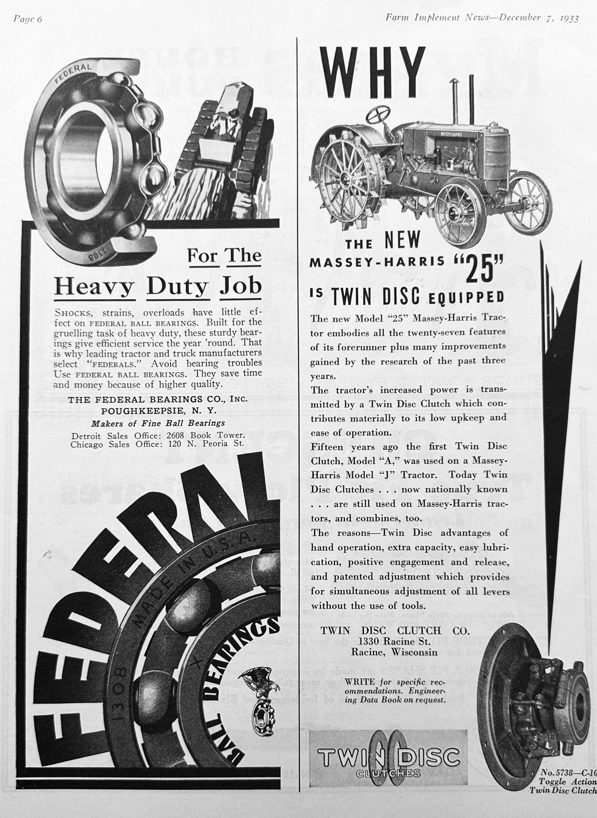 1933 Massey-Harris Model 25 is Twin Disc Equipped Ad #1399