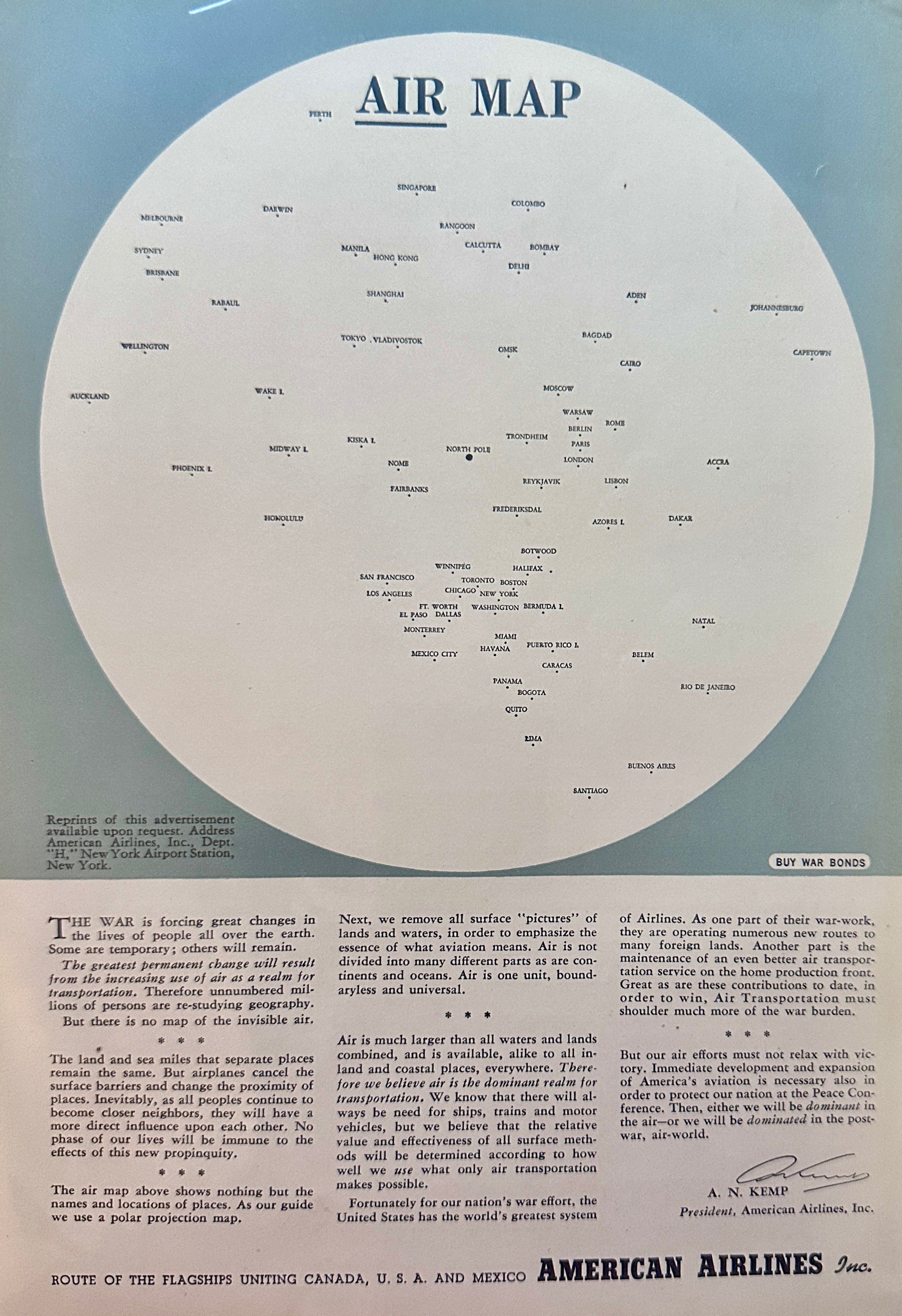1943 American Airlines Air Map - Charting the Flight Paths of the Future S56