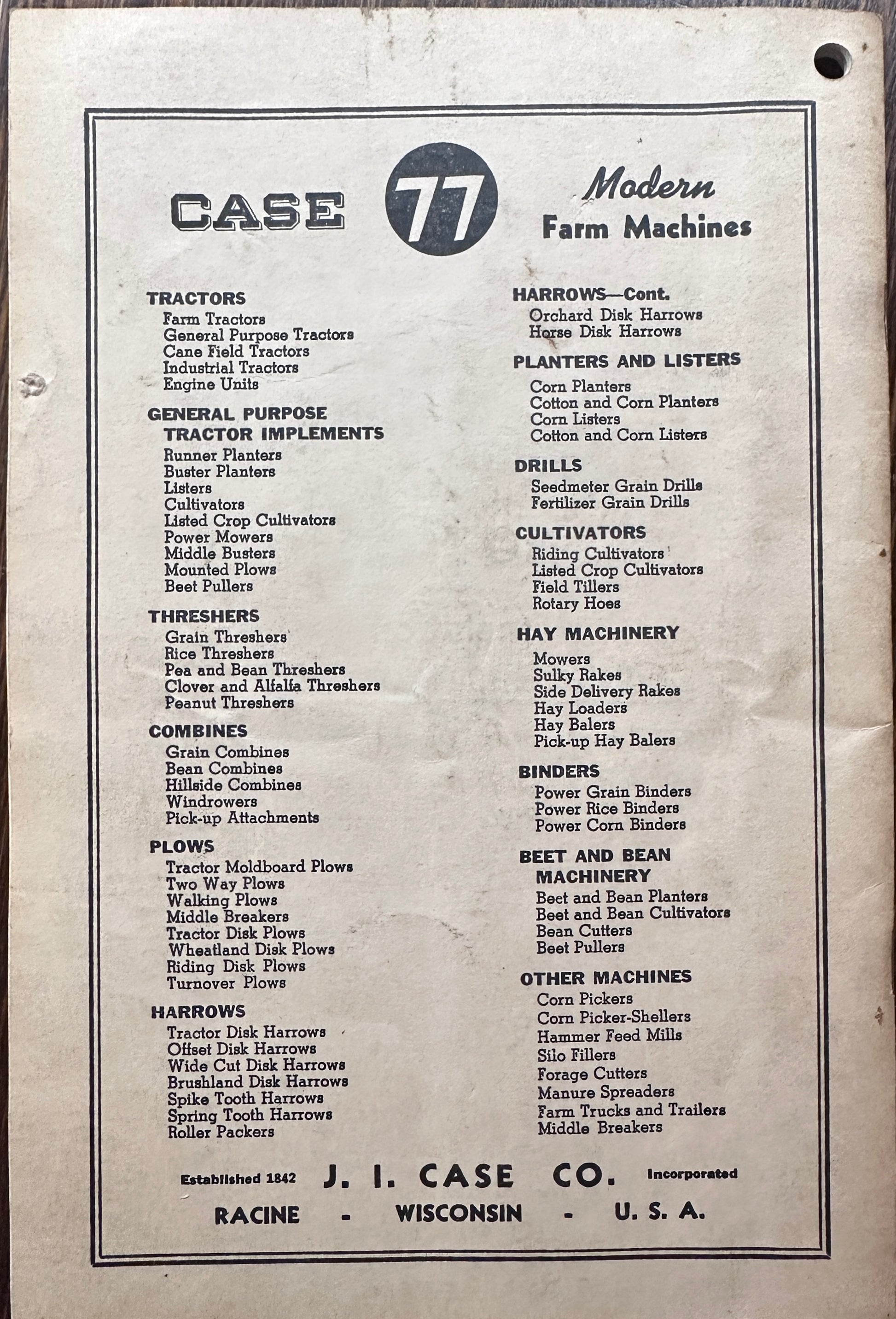 This original 7 x 9" operator's manual came with the Case T7 Power Mower. I believe the manual dates from 1945, but am not positive. The front cover is marked DB-1491 4000 8-45. The front cover and the 2nd page were evidently the supper for a family of mice are some point, but it either killed them or was not to their liking as they stopped after that. All pages are intact except for those two shown in the images. Manual contains 35 pages, and is 100% legible. It also looks like this manual was updated in the field as it has several pages that a new factory issued page was glued in.