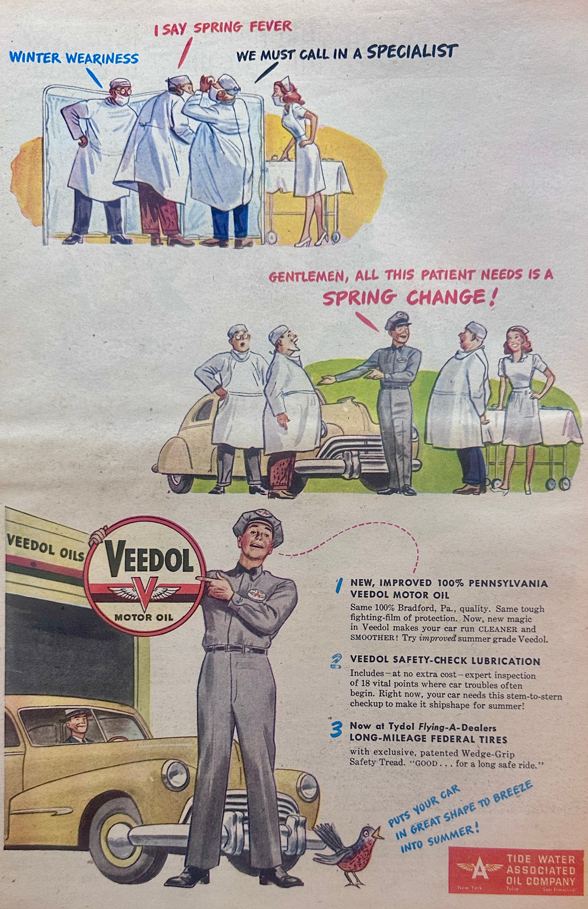 1947 Veedol Flying "A" Motor Oil Classic Ad #1323