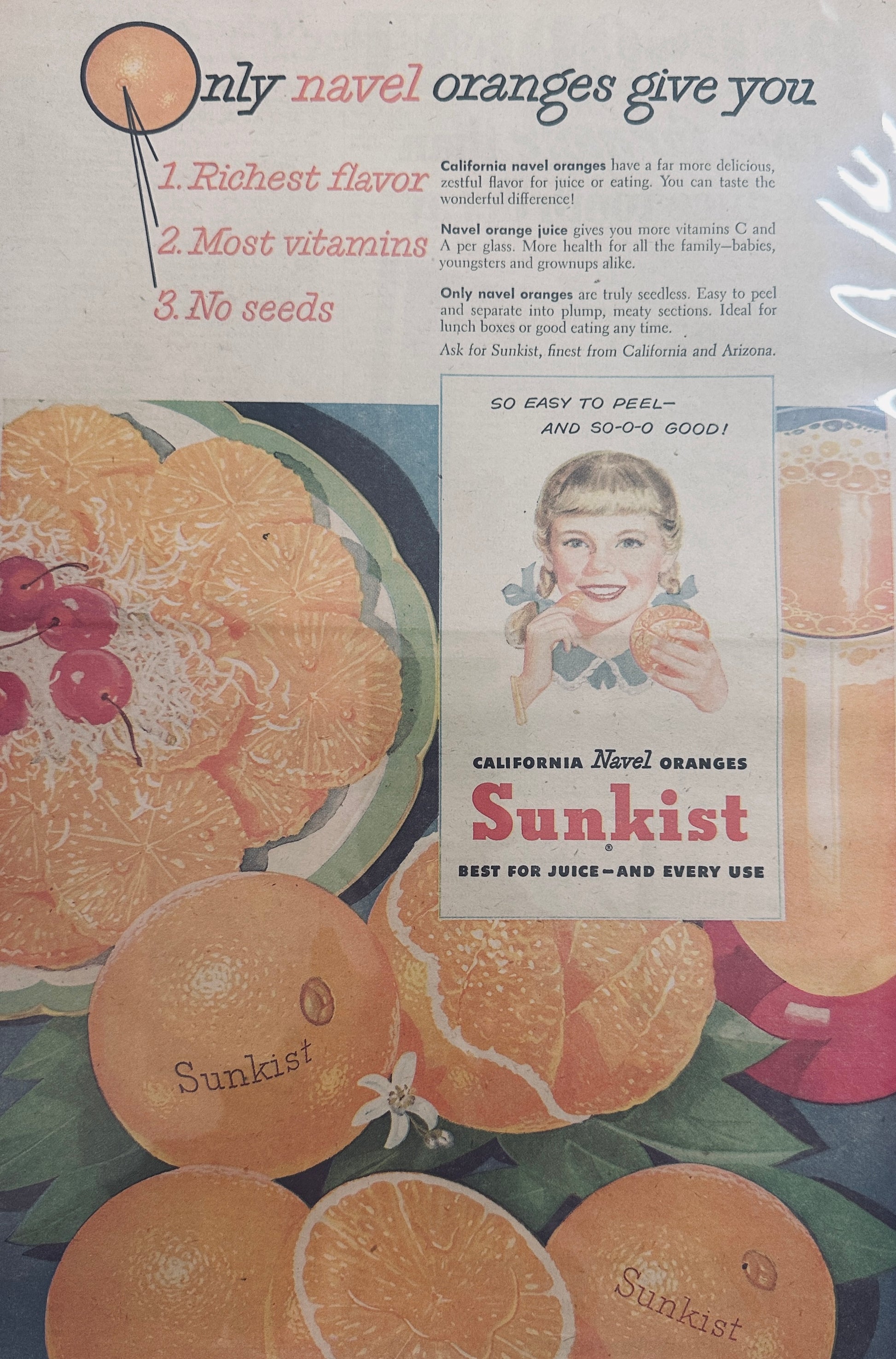 1950 Masterpiece Ad - Sunksist California Navel Oranges