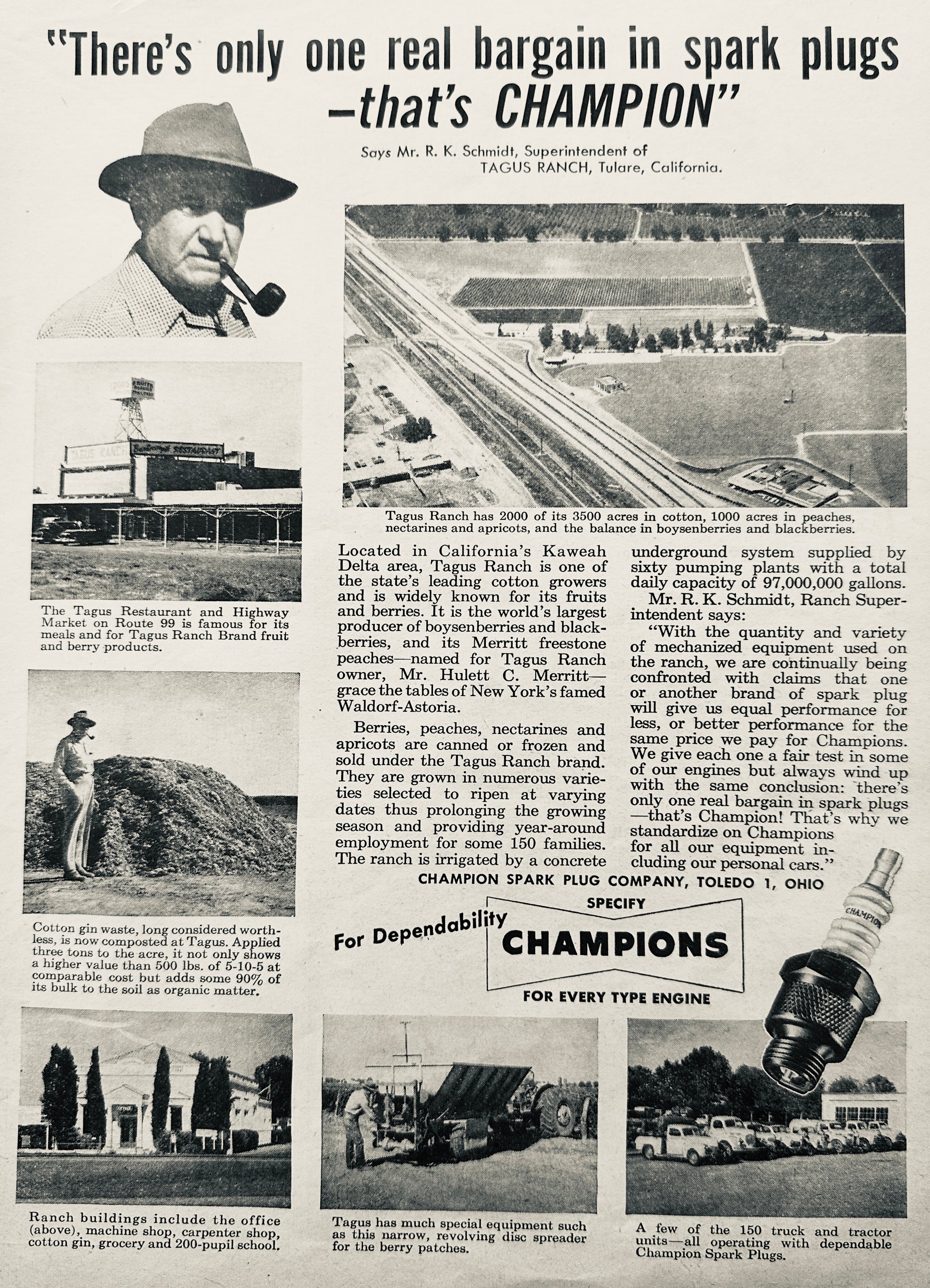 This original 8.5 x 11" magazine ad provides a testimonial that Champion Spark plugs of 1953 are the only real bargain.