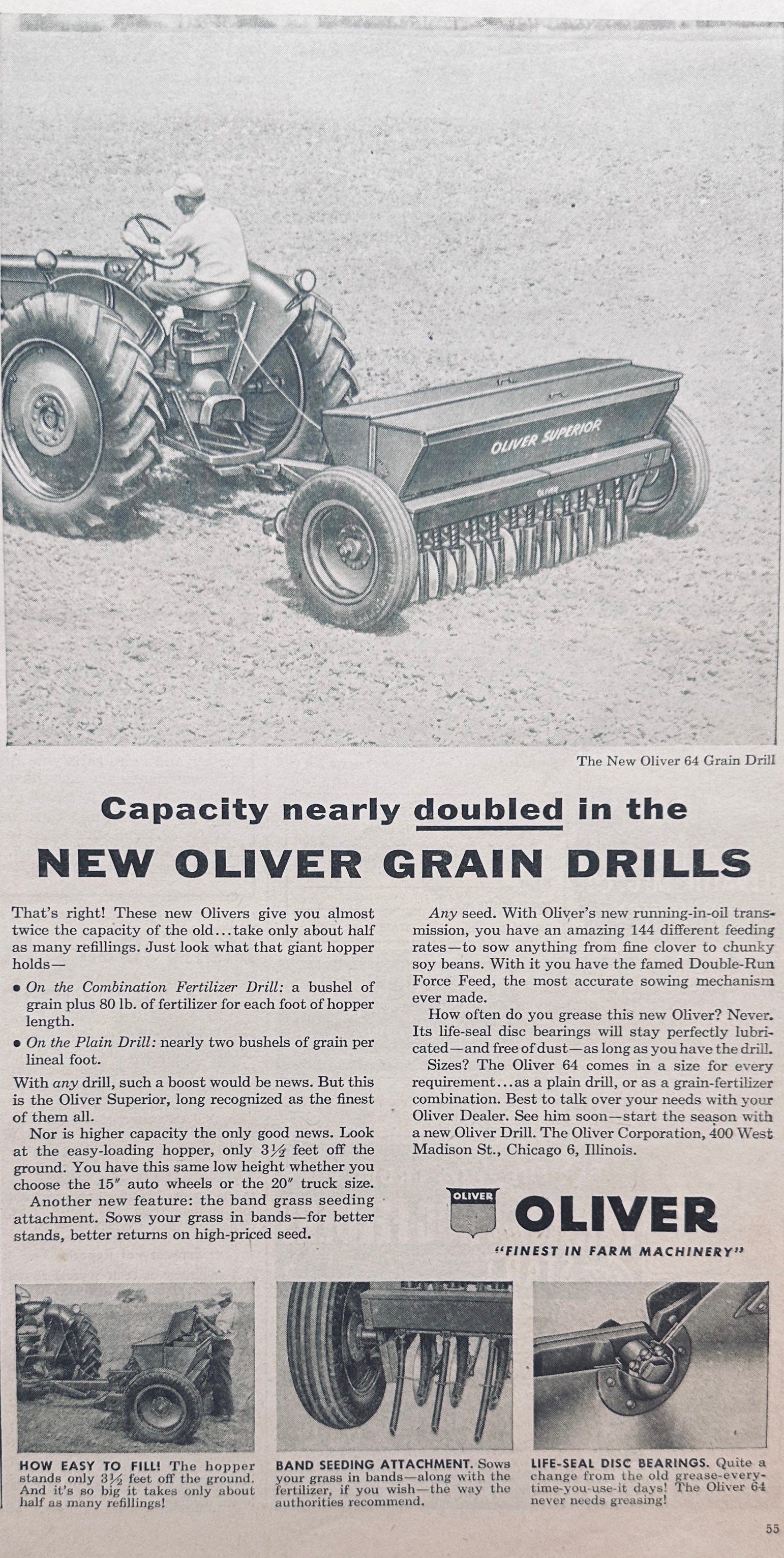 1955 Oliver Superior Model 64 Grain Drill Ad # 1136