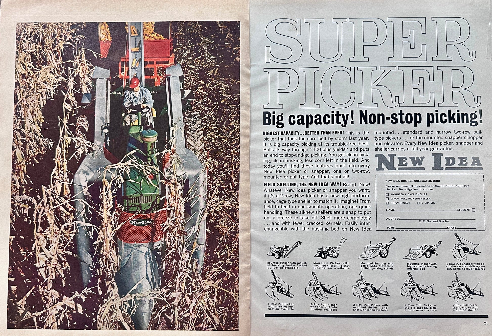 1962 2-Page (3-sdied) New Idean Corn Pickers Ad #1301