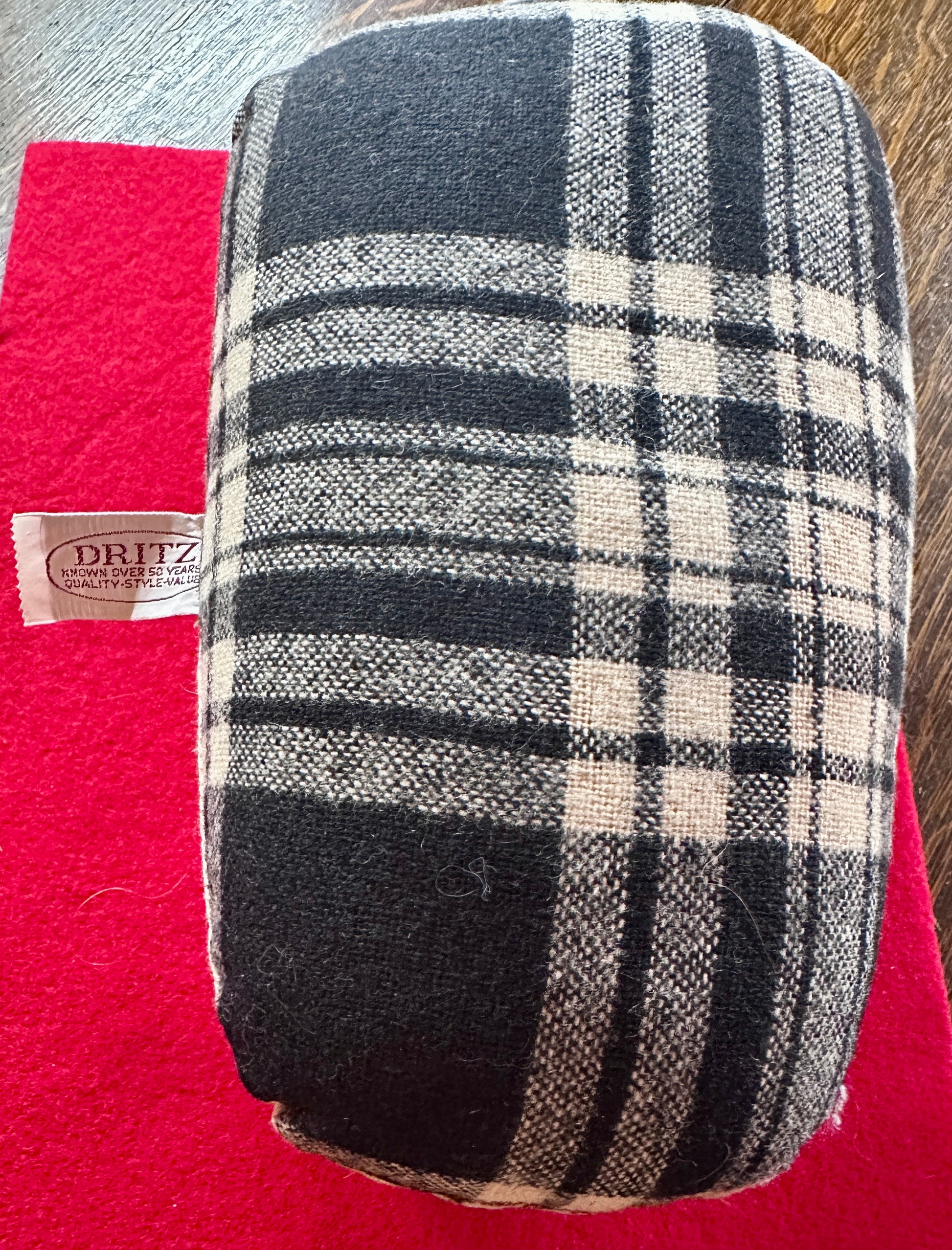 This Dritz pressing ham is in excellent used condition, having not been used in the last several years. It was purchased in the 1970's when I was first learning to sew. It is a plaid wool on one side and a linen backside. It is likely stuffed with sawdust, but can't be sure. It's measurements are @ 6" W x 10" L x 15" in diameter.