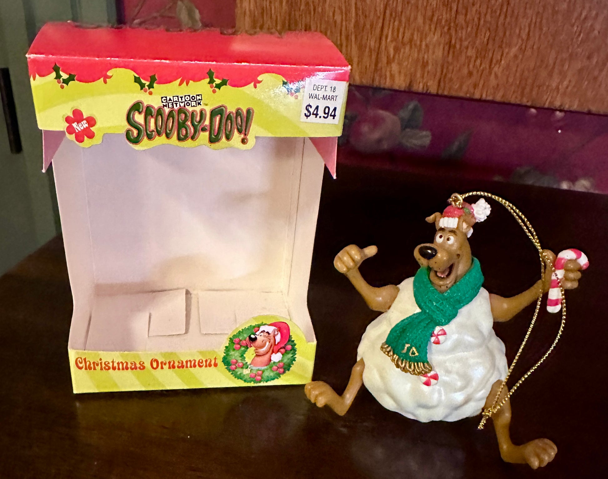 This original Cartoon Network sponsored Christmas Ornament featured Scooby-Doo rolled up in a giant snowball. The ornament was sold in 2002 through Walmart, comes with it's original box. Preowned item is in excellent used condition.