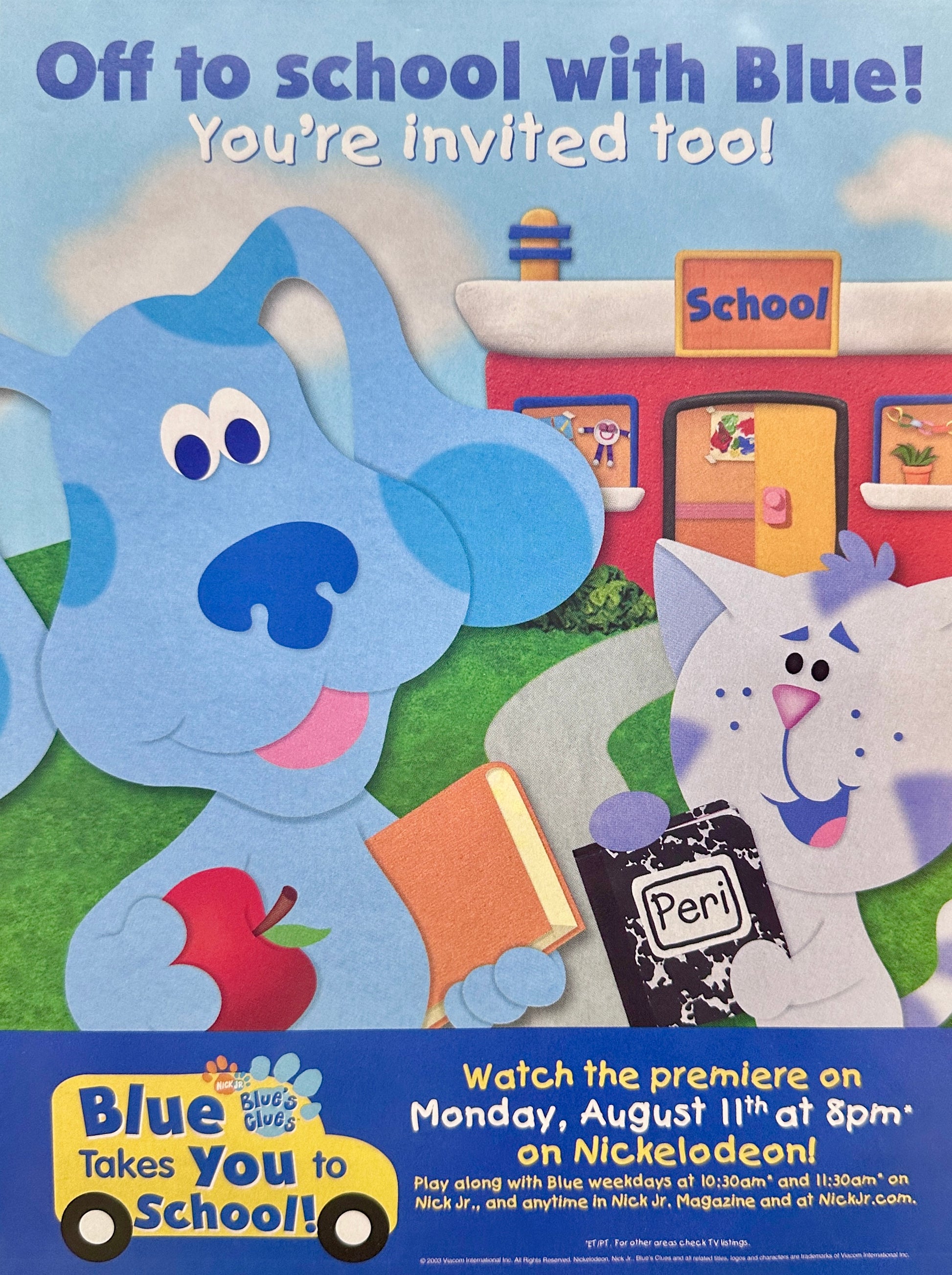 Original 8.5 x 11" magazine ad from 2003 promoting the very popular children’s show Blue's Clues, on Nickelodeon.