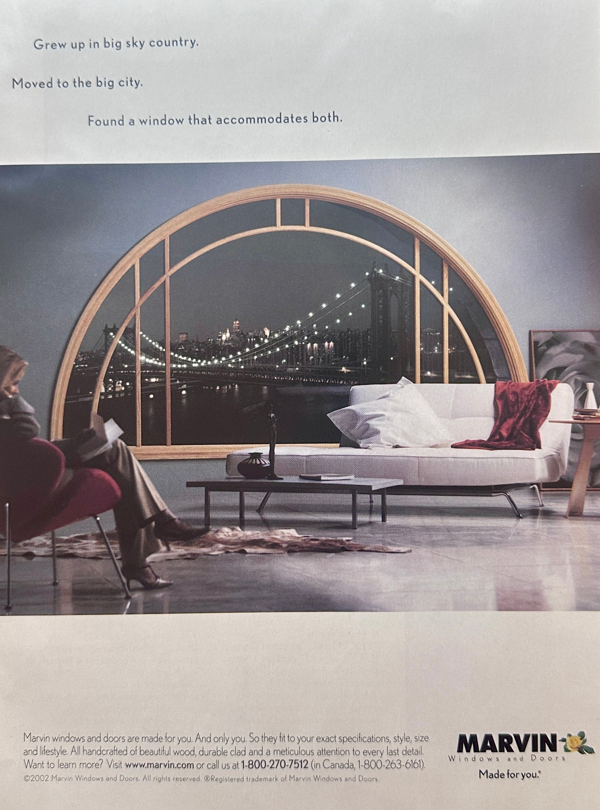 This original 8.5 x 11" magazine ad from 2003 showcases the versatility of custom Marvin Windows to support your need to see.