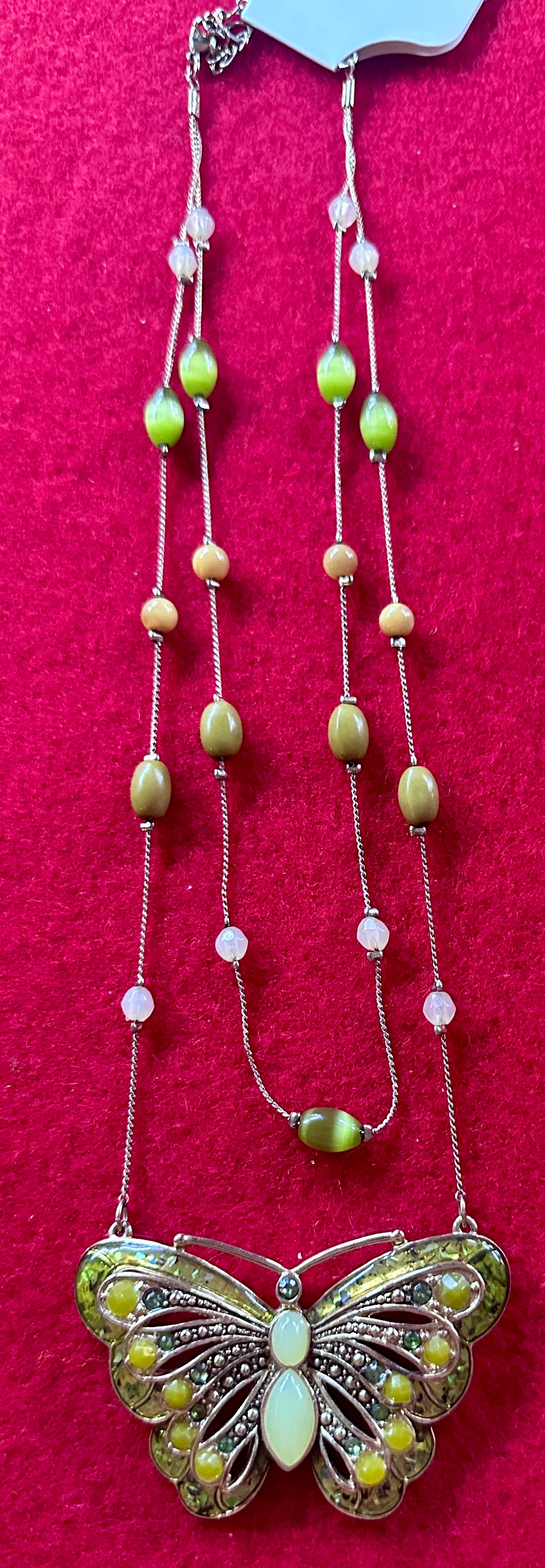 Beautiful Vintage Glow in the Dark Butterfly Multi-Strand Necklace